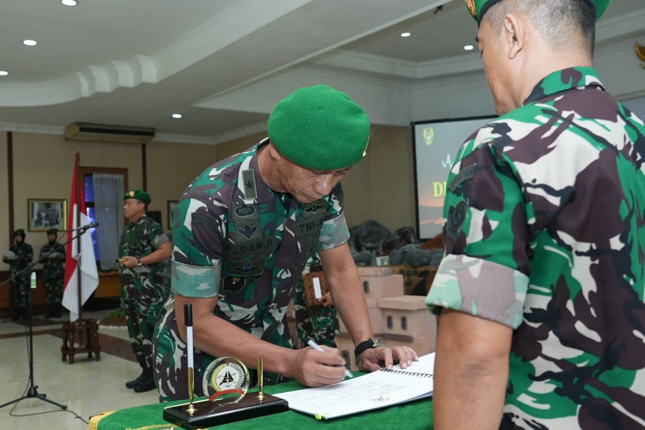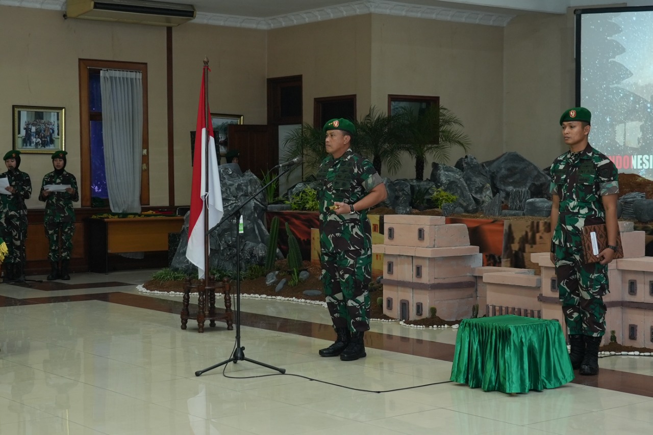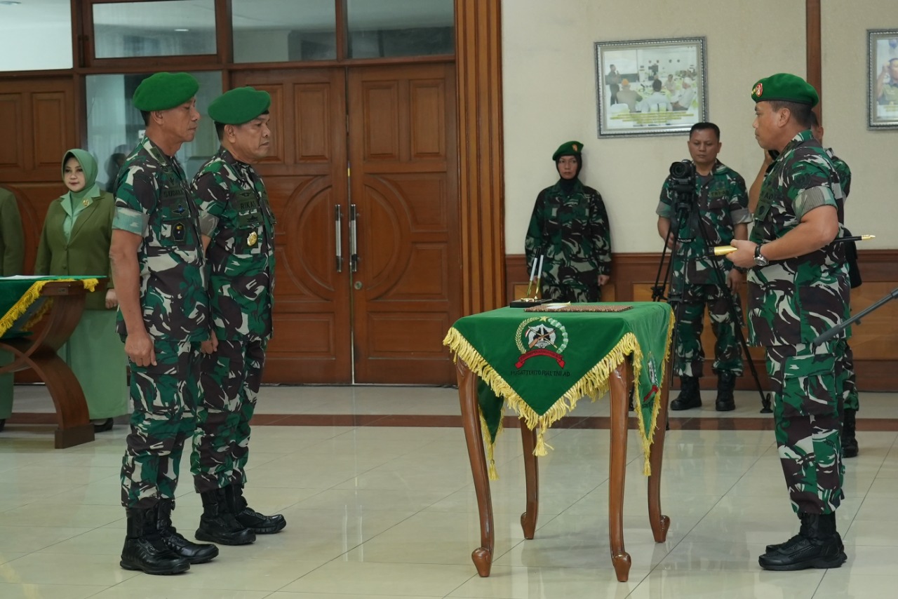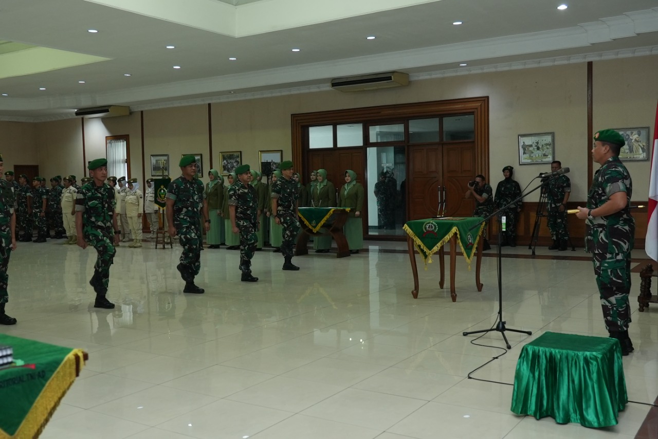 Jakarta. Pusterad.tni-ad.mil.id. Komandan Pusat Teritorial TNI AD Mayjen TNI Teguh Muji Angkasa, S.E., M.M. memimpin Acara Serah Terima Jabatan Dirum Pusterad dan Tradisi Satuan Pusterad di Mapusterad, Cipayung, Jakarta Timur (26/9/2022)