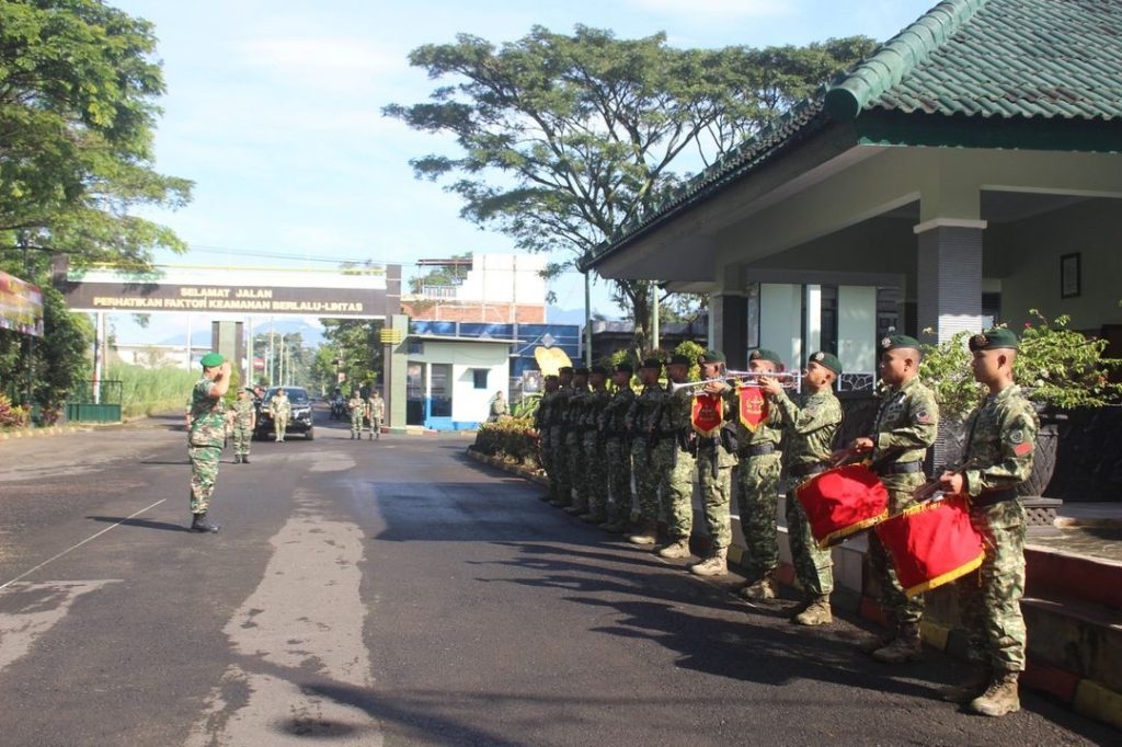 Komandan Pusat Teritorial TNI AD Letnan Jenderal TNI Teguh Muji Angkasa, S.E, M.M,. di sambut Komandan Batalyon Kesehatan 2/YBH/2 kostrad Letkol Ckm Agung Siswanto, Sp. KGA dalam kunjungannya ke Mayonkes 2 Kostrad Desa Ngijo Kecamatan Karangploso Kabupaten Malang.(3/3/2023).