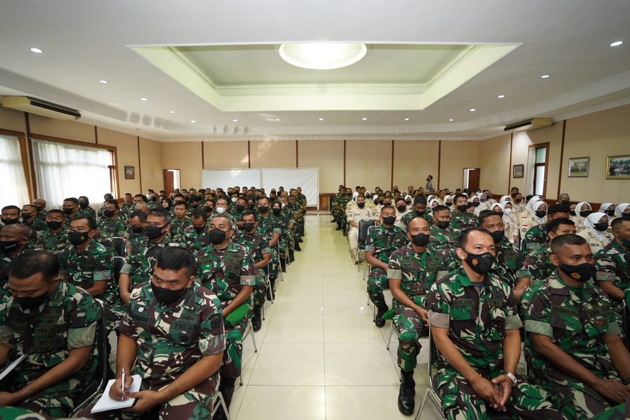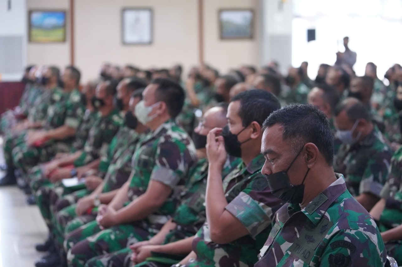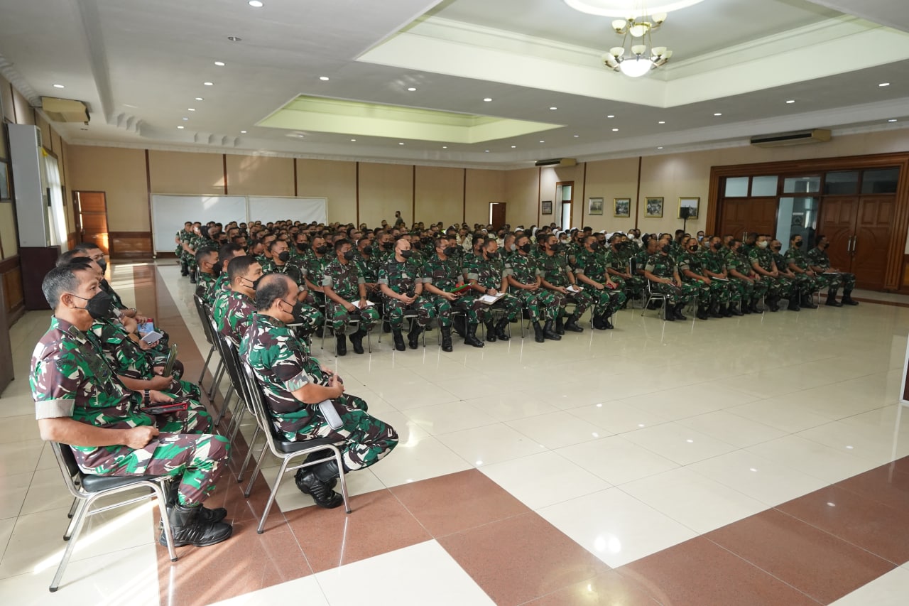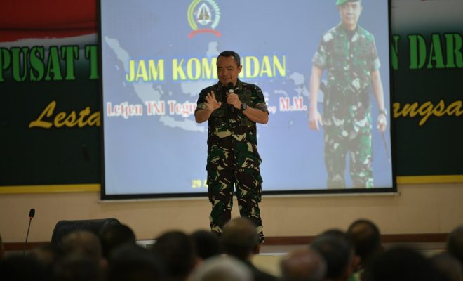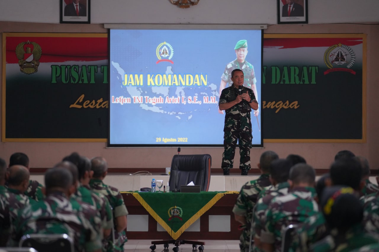 Jakarta. pusterad.tni-ad.mil.id. Komandan Pusat Teritorial TNI Angkatan Darat, Letnan Jenderal TNI Teguh Arief I, S.E., M.M., memberikan Jam Komandan kepada seluruh Prajurit dan PNS Jajaran Pusterad di Aula Gajah Mada Mapusterad. Cipayung Jakarta Timur (29/8/2022)