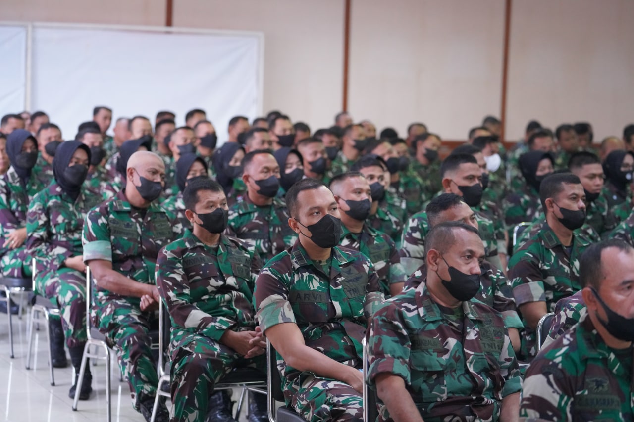 Dalam arahannya Komandan menyampaikan penekanan tentang pentingnya menjaga kesehatan masing-masing anggota dengan menjaga pola hidup dan pola makan serta pentingnya melakukan olahraga rutin agar tidak terserang penyakit gula, stroke dan lainnya, berikutnya beliau juga menekankan tentang masih adanya pandemi covid 19 yang sampai saat ini belum berakhir agar tetap waspada jangan sampai tertular.