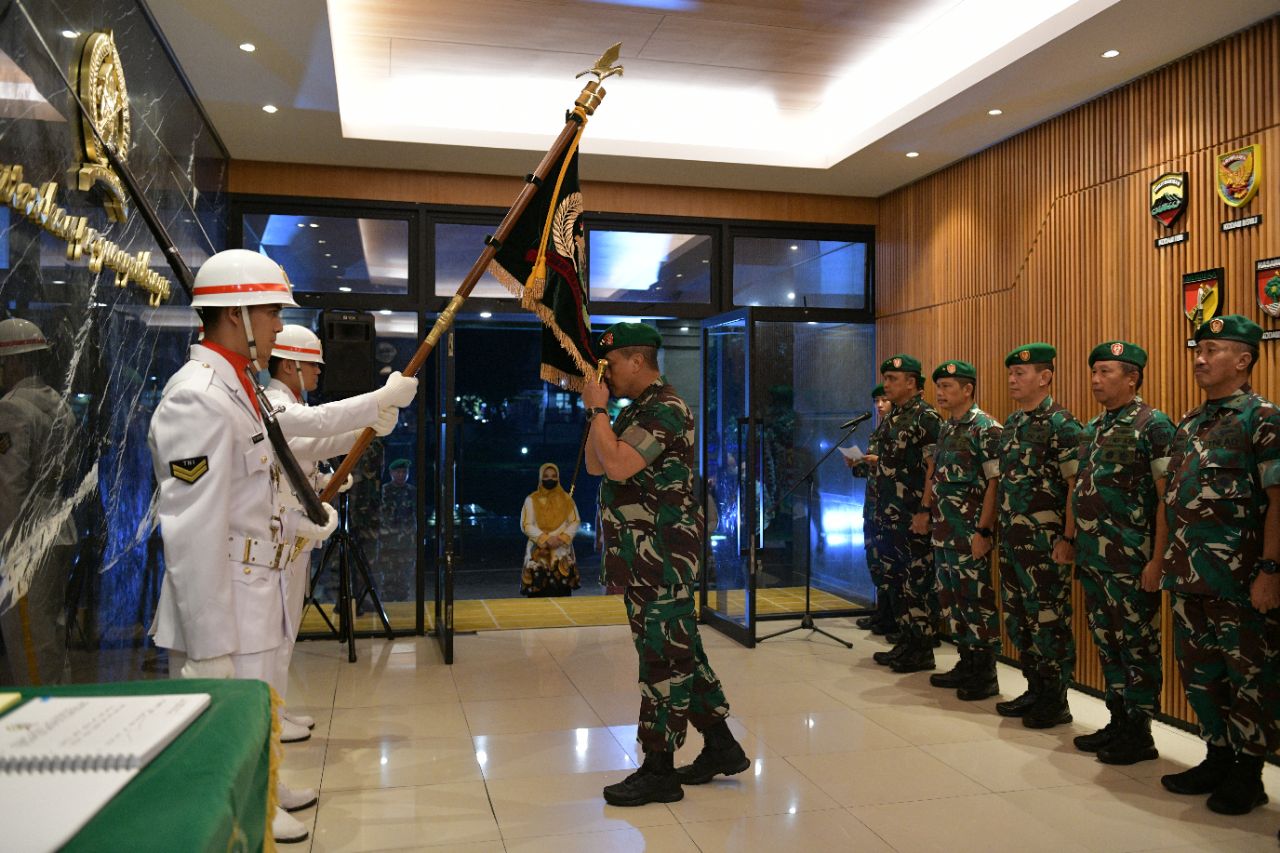 Jakarta. pusterad.tni-ad.mil.id. Komandan Pusat Teritorial TNI Angkatan Darat Mayjen TNI Teguh Muji Angkasa, S.E., M.M. menerima sambutan dari para pejabat Utama dan seluruh warga Pusterad dalam acara penerimaan dan tradisi pengukuhan sebagai Warga di Mapusterad Cipayung Jaktim (5/9/2022).
