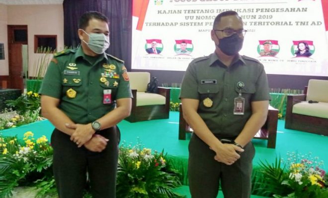 JAKARTA (Indonesiadaily.co. id) Dalam rangka meningkatkan rasa nasionlisme bela negara, maka diperlukan penyusunan kebijakan tentang bidang pembinaan teritorial. Untuk itu diperlukan sosialisasi, salah satunya melalui Focus Group Discussion (FGD). Dan kali ini mengangkat tema kajian tentang implikasi Pengesahan UU No. 23 tahun 2019 Terhadap Sistem Pembinaan Territorial TNI AD.