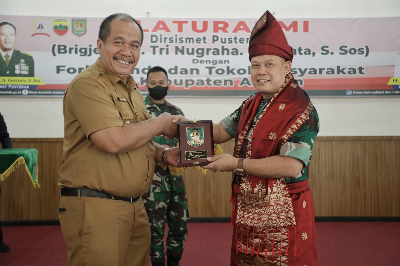 Usai memberikan Sambutan Ketua Tim Pusterad Kolonel Arh. Fachruddin Usuluddin.SE.M.Han menyerahkan Cenderamata Kepada Wakil Bupati Asahan dan Forkopimda serta 40 penerima dari masyarakat.