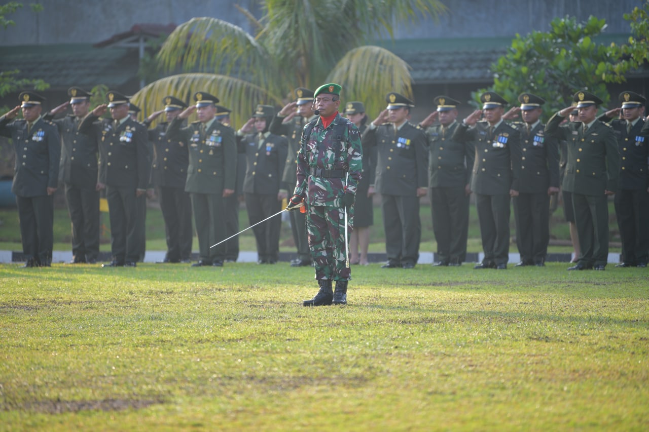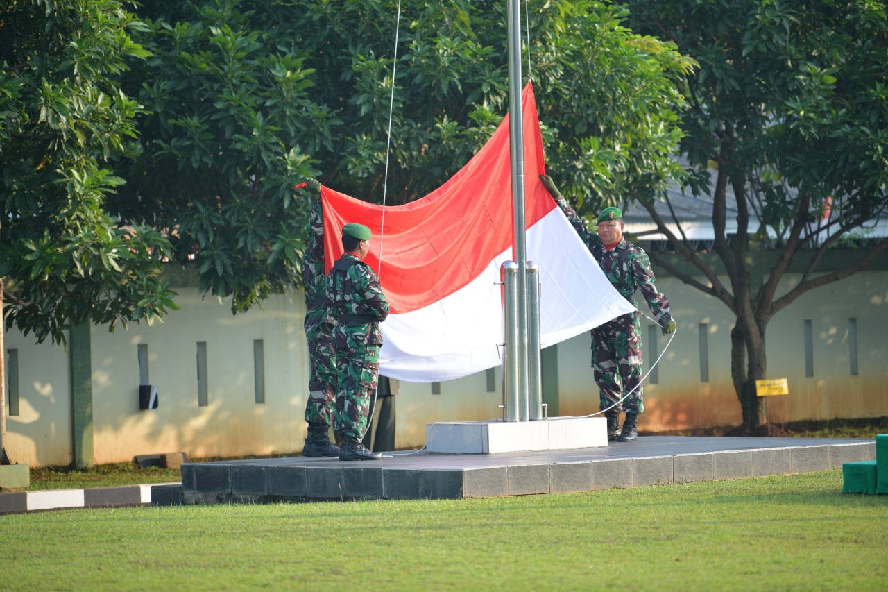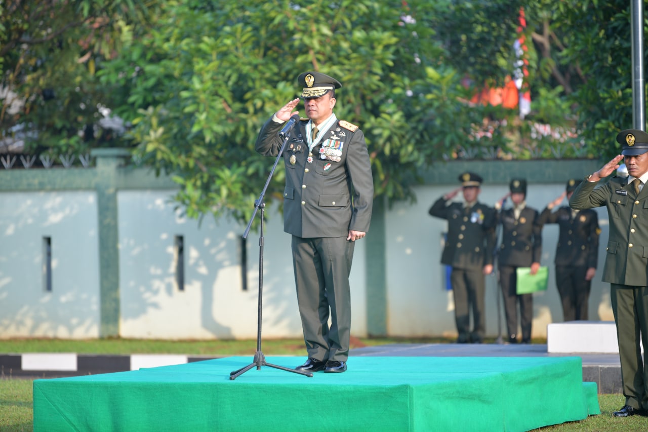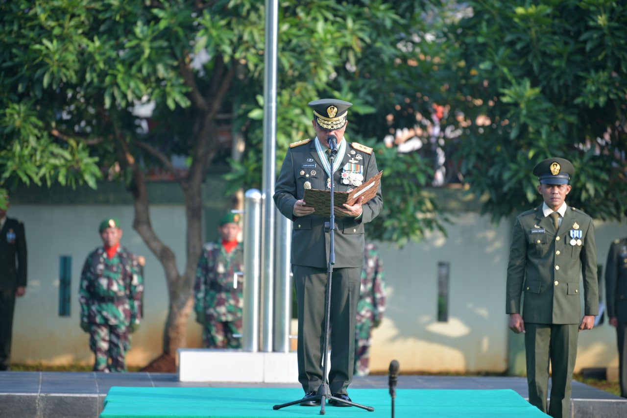 Wadan Pusterad Mayjen TNI Ilyas Alamsyah memimpin Upacara Peringatan HUT ke 77 Kemerdekaan RI di Mapusterad Cipayung Jakarta Timur (17/8/2022)